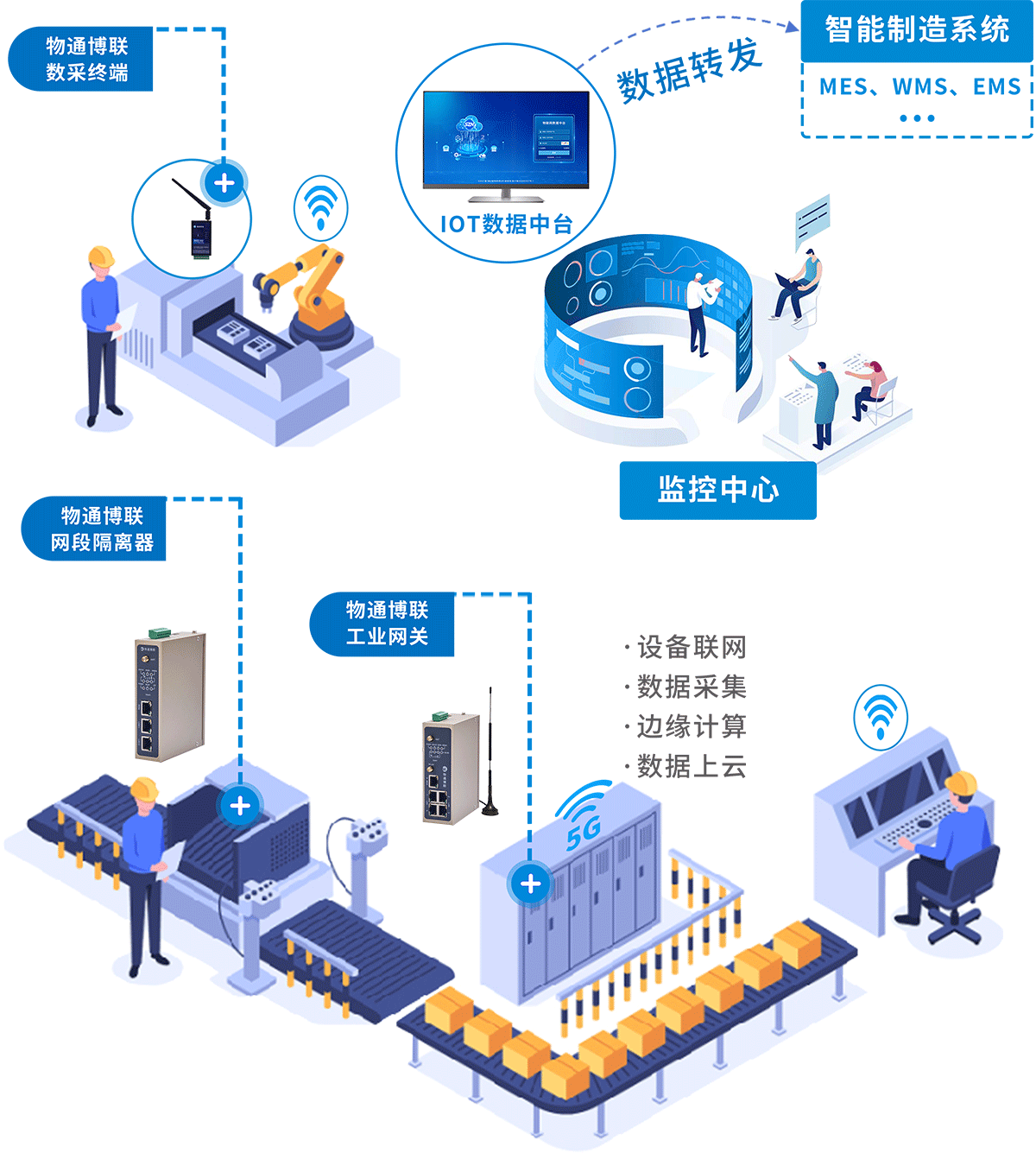 金年会jinnian聚焦工厂数字化转型,构建 “边缘接入 - 数据处理 - 应用落地” 技术体系:以工业智能网关、数采终端等边缘硬件,接入工厂生产设备、能耗设备、安防监控设备,解析异构协议并做边缘预处理。再将标准化数据上传至物联云平台与 MES 系统,同时依托 IOT 数据中台实现数据资产化管理,支撑设备监控、能耗分析、生产可视化等应用。最终打通 “设备 - 数据 - 业务” 链路,助力工厂完成生产运营数字化升级,为柔性生产、预测性维护等新业务给予技术底座。